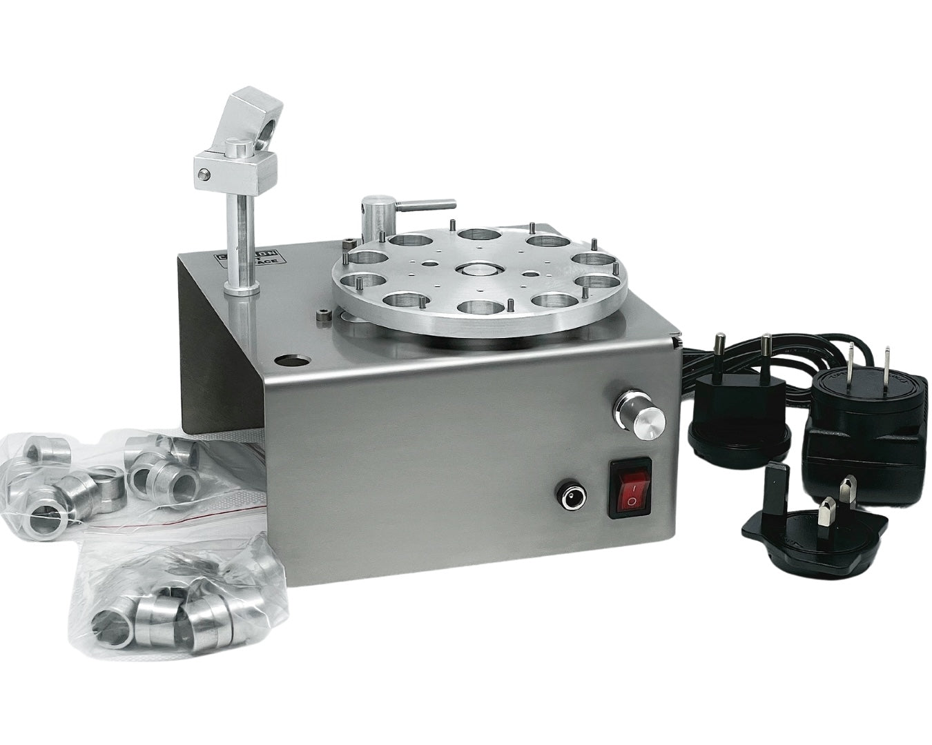 AGS Brass Case Annealer – for multiple calibers, with interchangeable inserts. Two sets are included – smaller set is for .223 and alike cases (with .402″ – 10.2 mm opening), and larger set is for .308 and alike cases (with .492″ – 12.5 mm opening). Use without inserts for .338 and alike (.622″ – 15.8 mm).