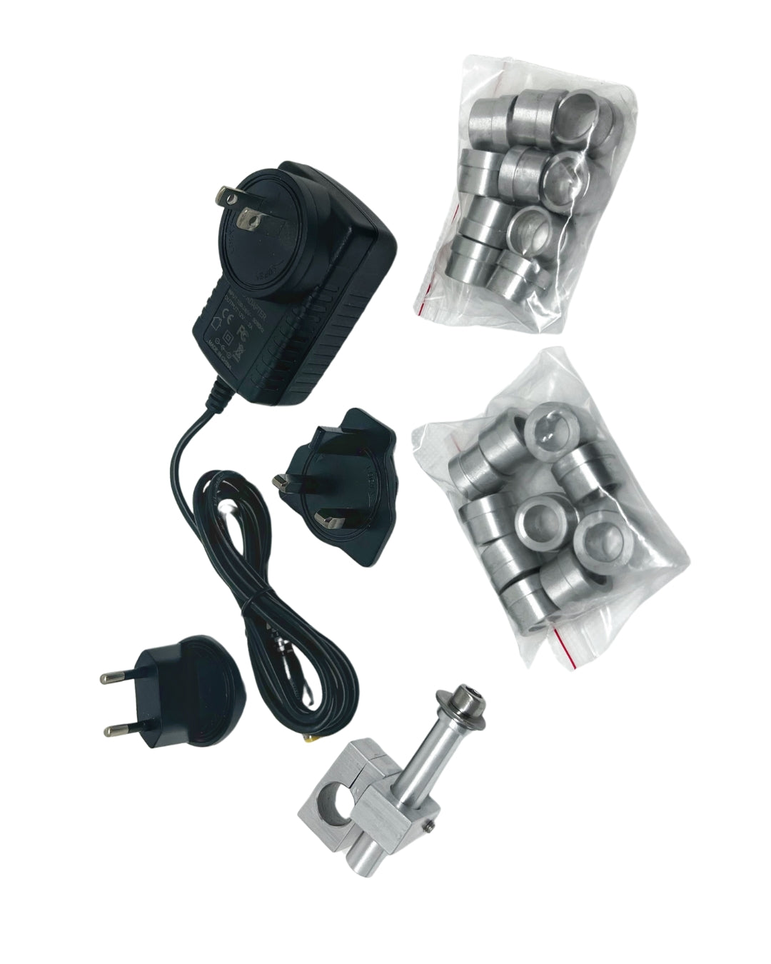 Power charger included – 12V DC 2A – which comes with multi (US/UK/EU) wall plugs.
